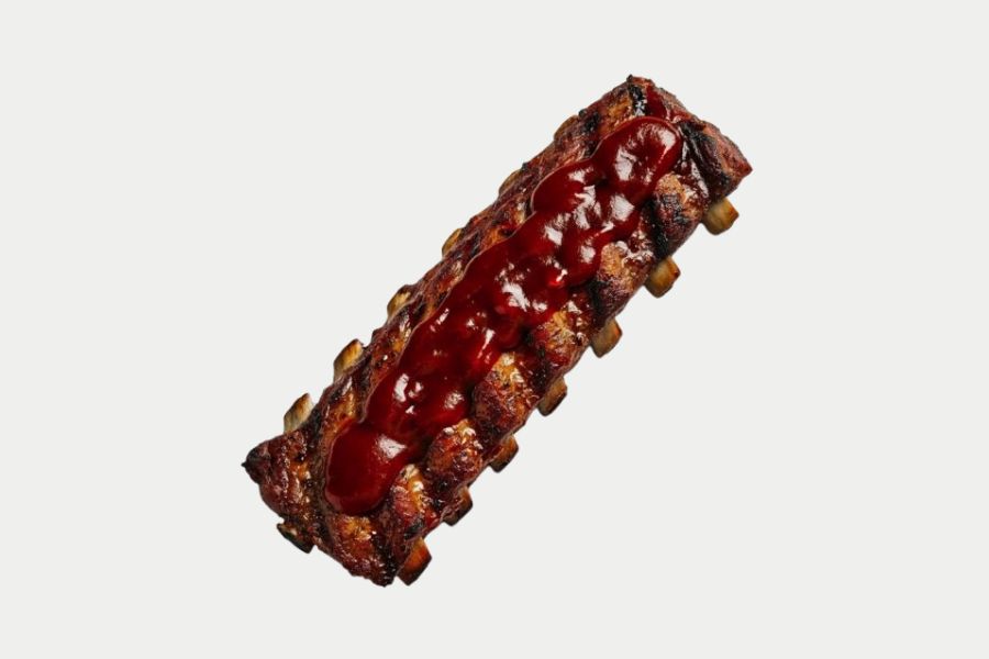 Tira de costilla de cerdo cocinada lentamente al vacío y bañada en salsa barbacoa.